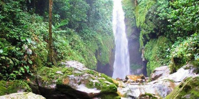 Cascada y Río Zacate tiene una altura de 36 metros, su agua es color esmeralda la cual desemboca en una pequeña quebrada donde el visitante puede refrescarse, se ubica en El Porvenir Departamento Atlantida es parte de la belleza natural de Pico Bonito Parque Nacional.
