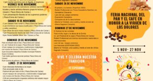 Programa, Feria Nacional del Pan y el Café La Paz 2022, en Honor a la Virgen de los Dolores.