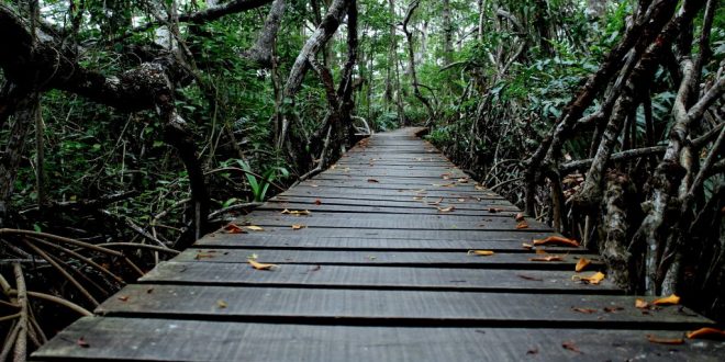 Esta bella laguna es un verdadero paraíso natural lleno de vida, ya que está ubicada atrás de una gran plantación de árboles de cacao y caña de azúcar desde donde se extiende hasta unirse con el mar y está rodeada de una numerosa cantidad de árboles de mangle. .