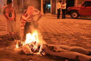 Los muñecos conocidos como Año Viejo son maniquís rellenos de pólvora que son quemados durante el fin del año. Esto como una forma de despedir el año que pasó y darle la bienvenida a un nuevo año lleno de oportunidades.